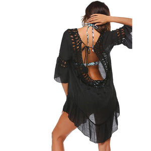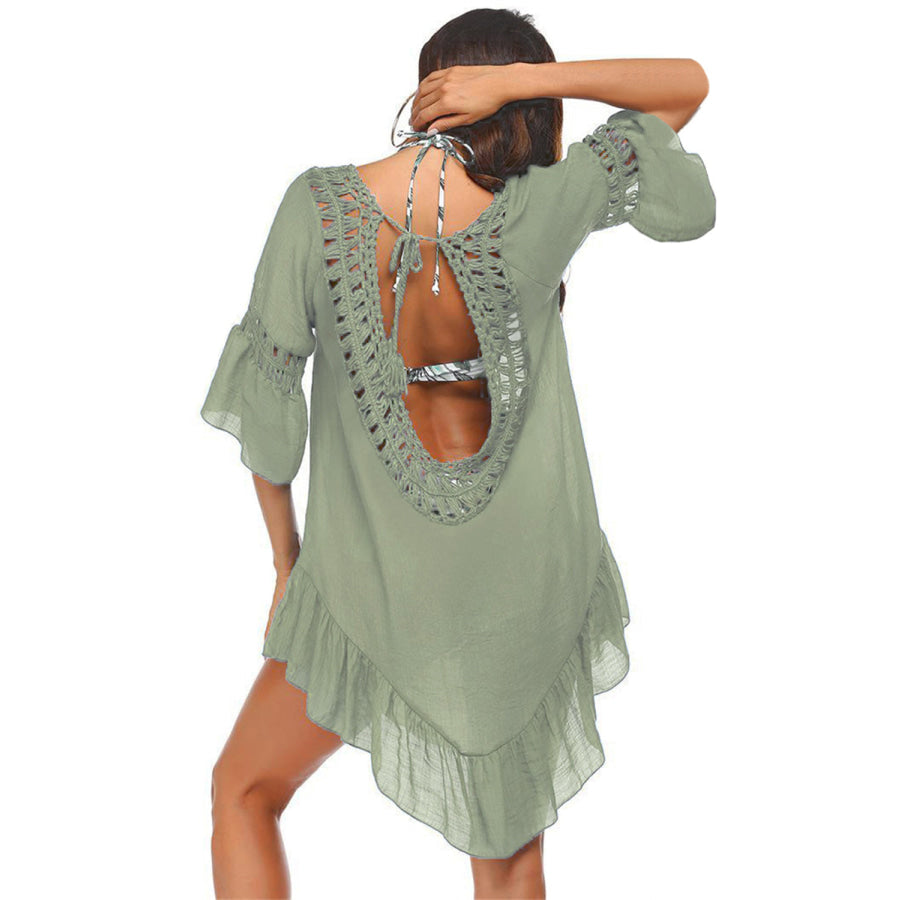 Backless Cutout Three-Quarter Sleeve Cover Up