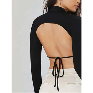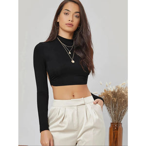 Backless Long Sleeve Cropped Mock Neck T-Shirt