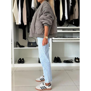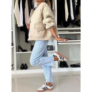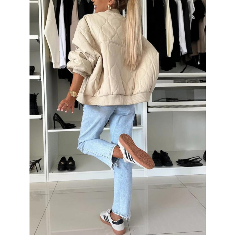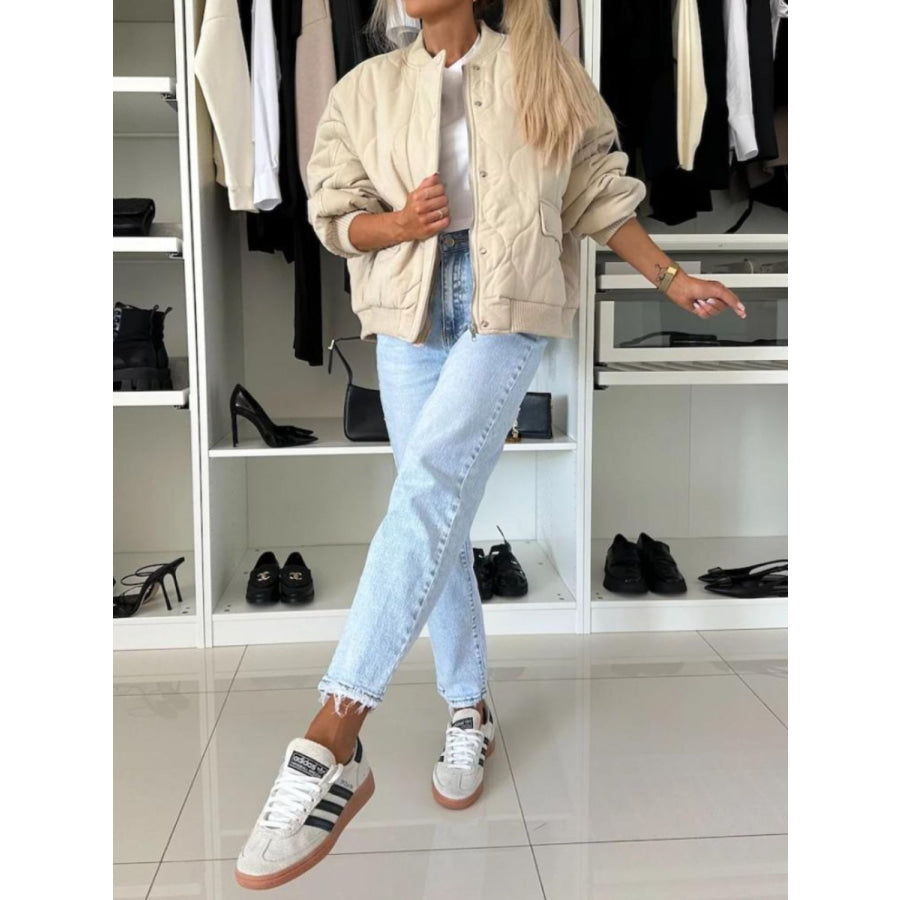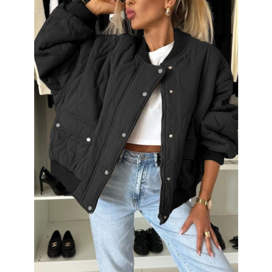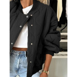 Baseball Collar Snap Down Long Sleeve Jacket