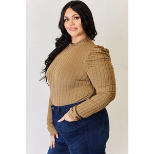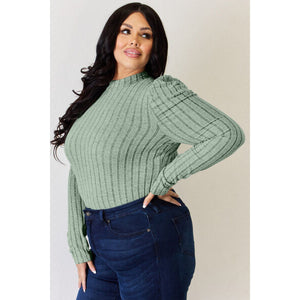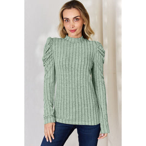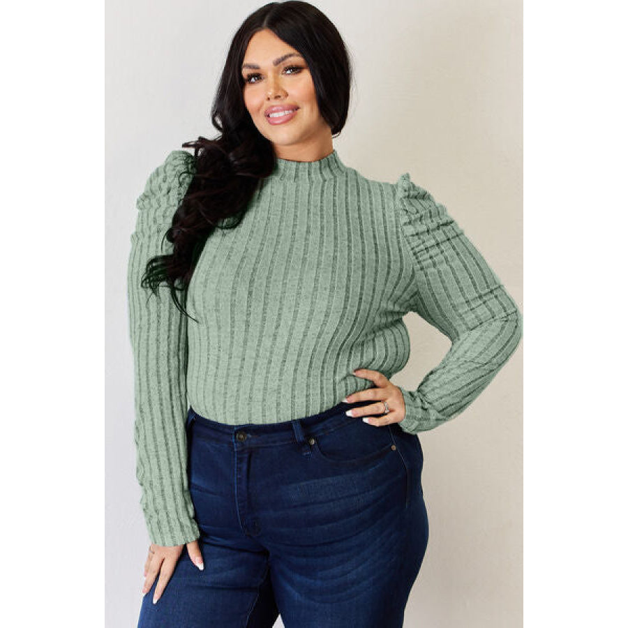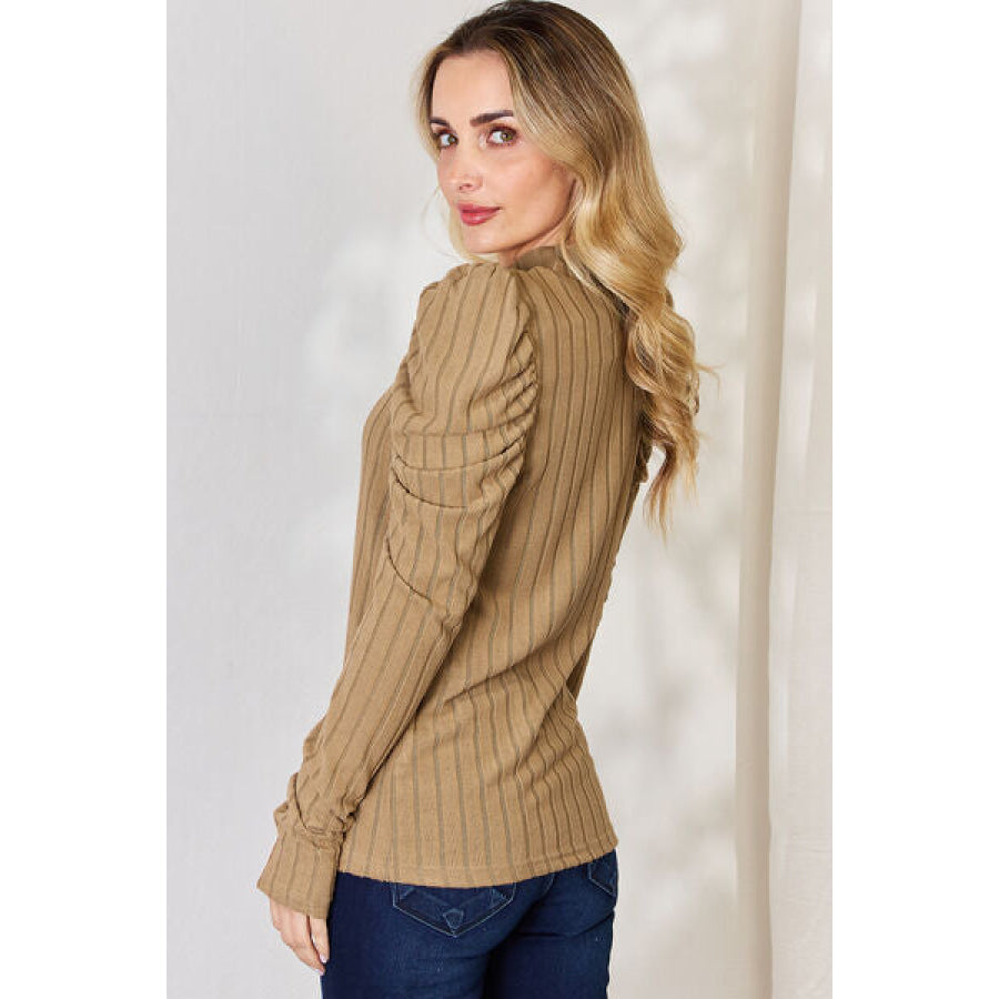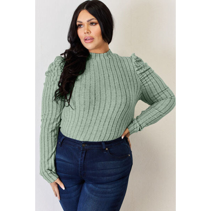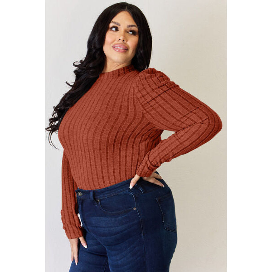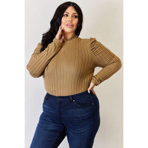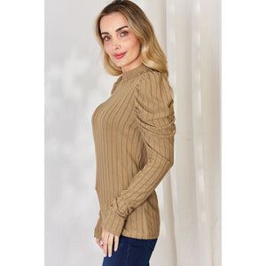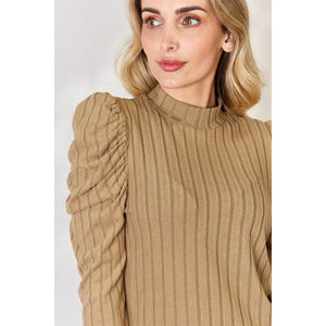 Basic Bae Full Size Ribbed Mock Neck Puff Sleeve T-Shirt