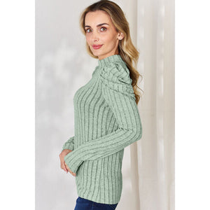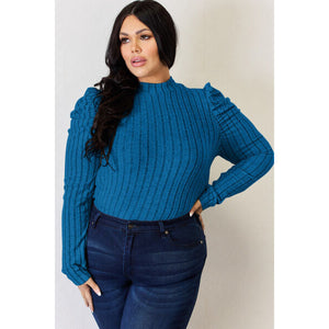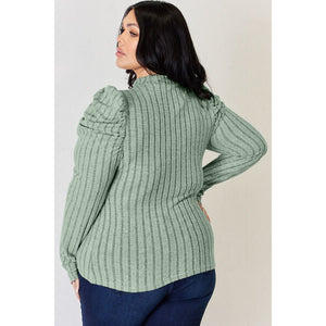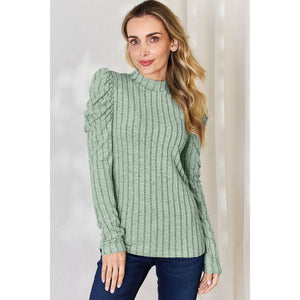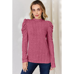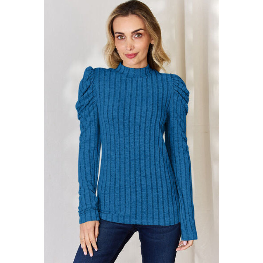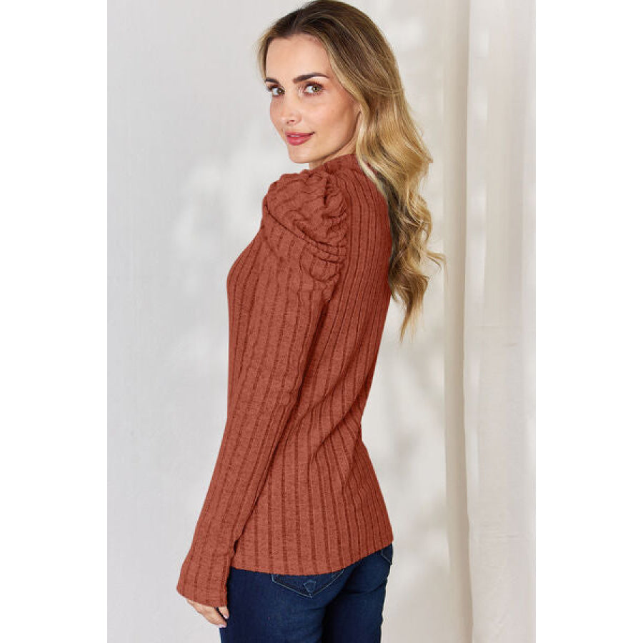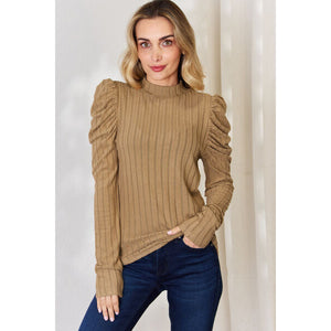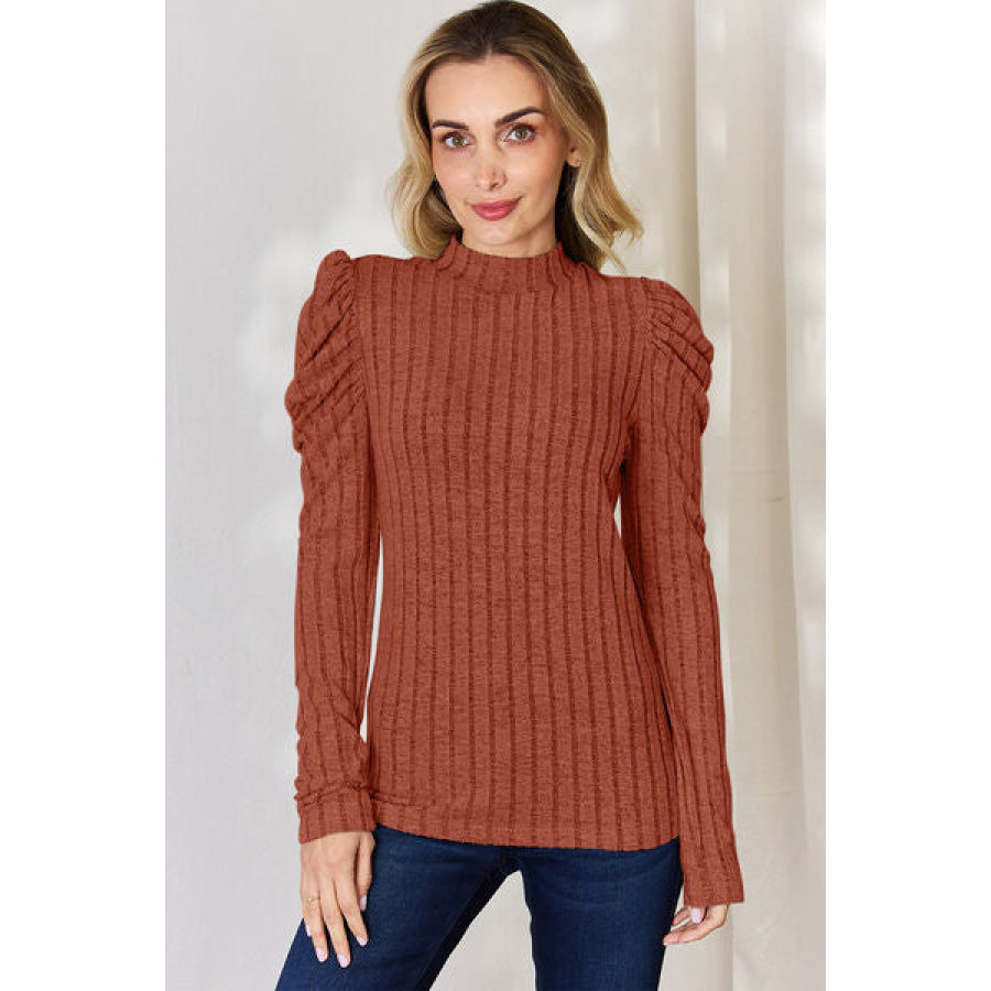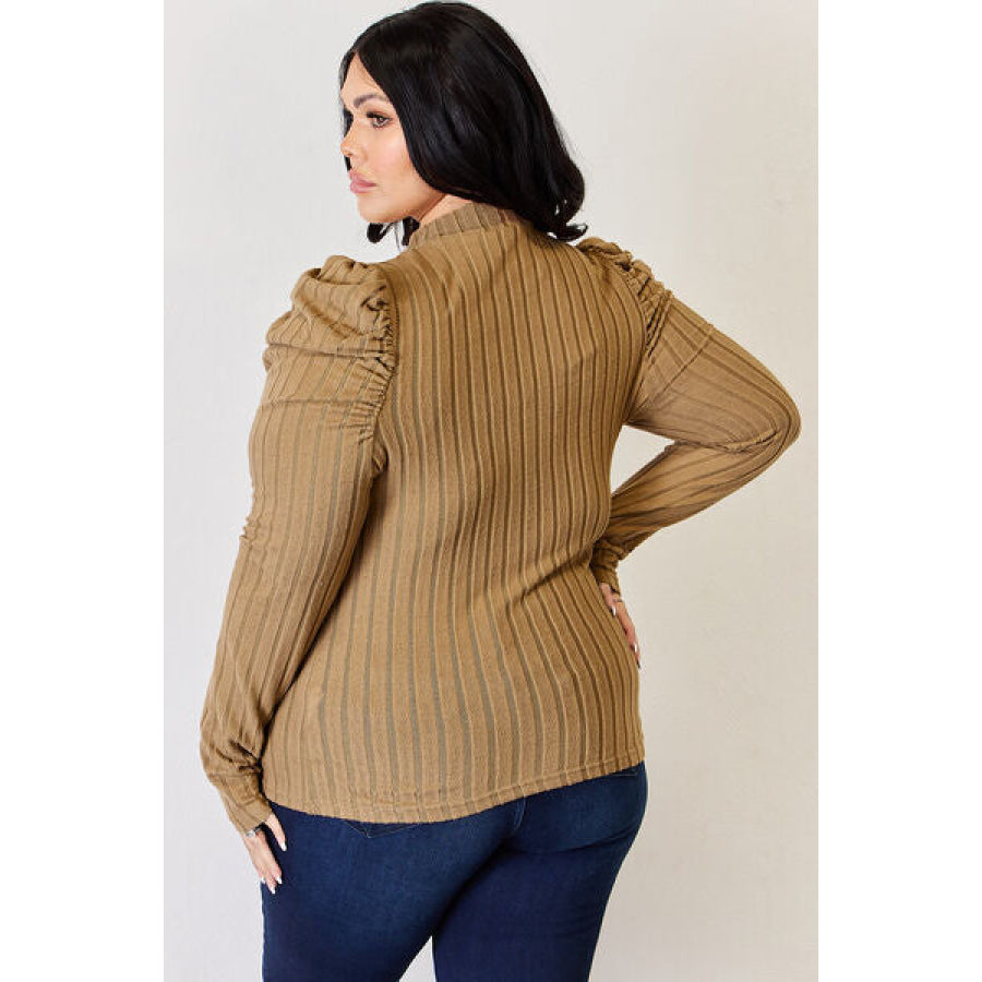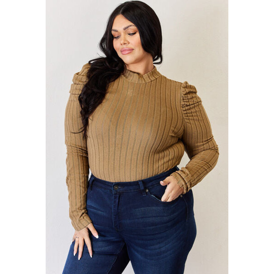 Basic Bae Full Size Ribbed Mock Neck Puff Sleeve T-Shirt