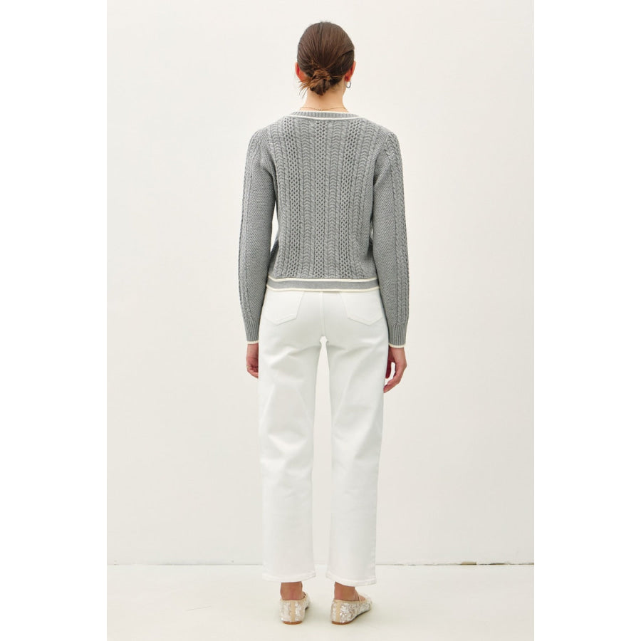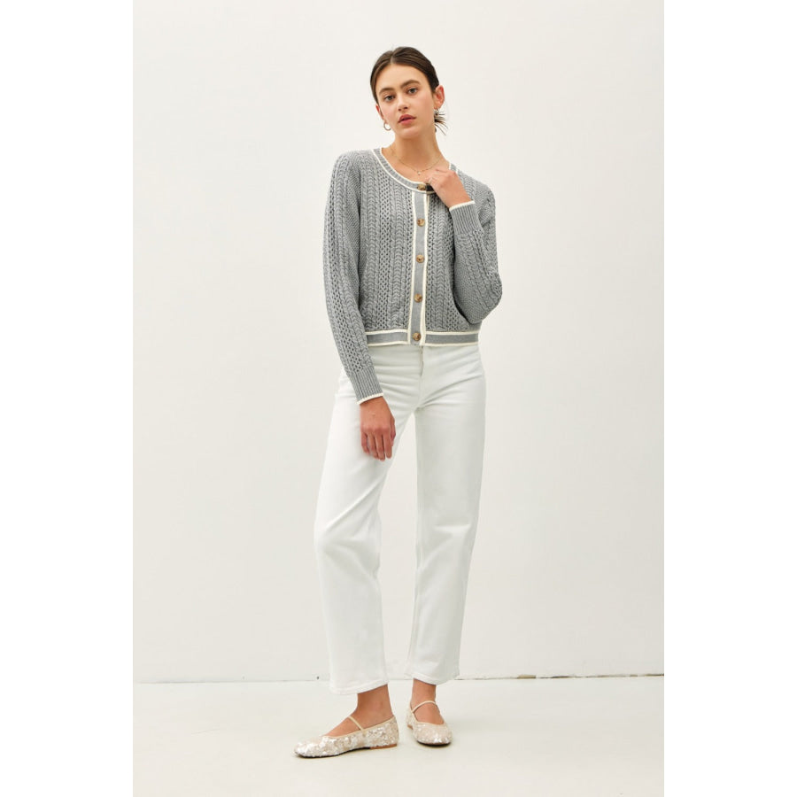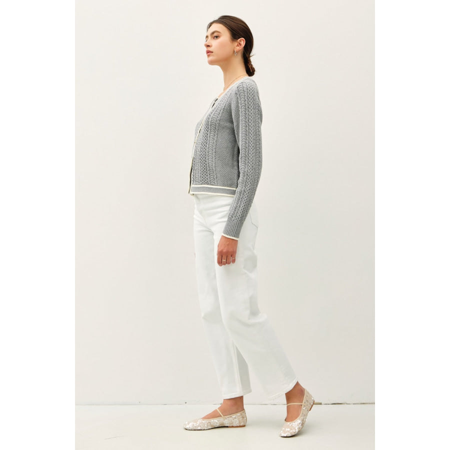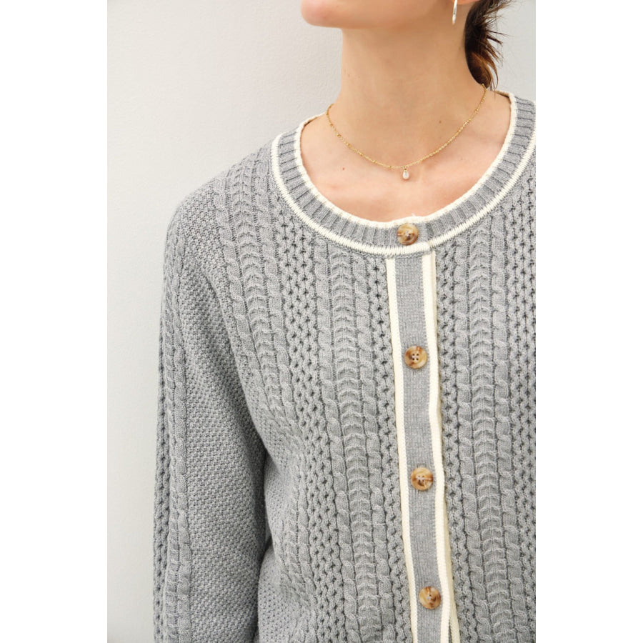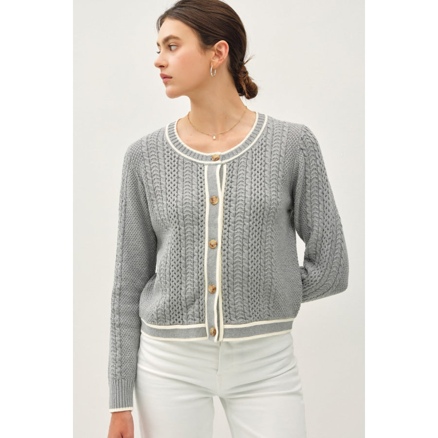 Be Cool Cable Knit Long Sleeve Contrast Edge Cardigan