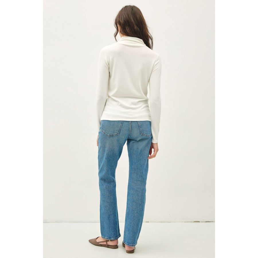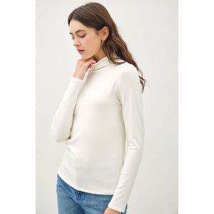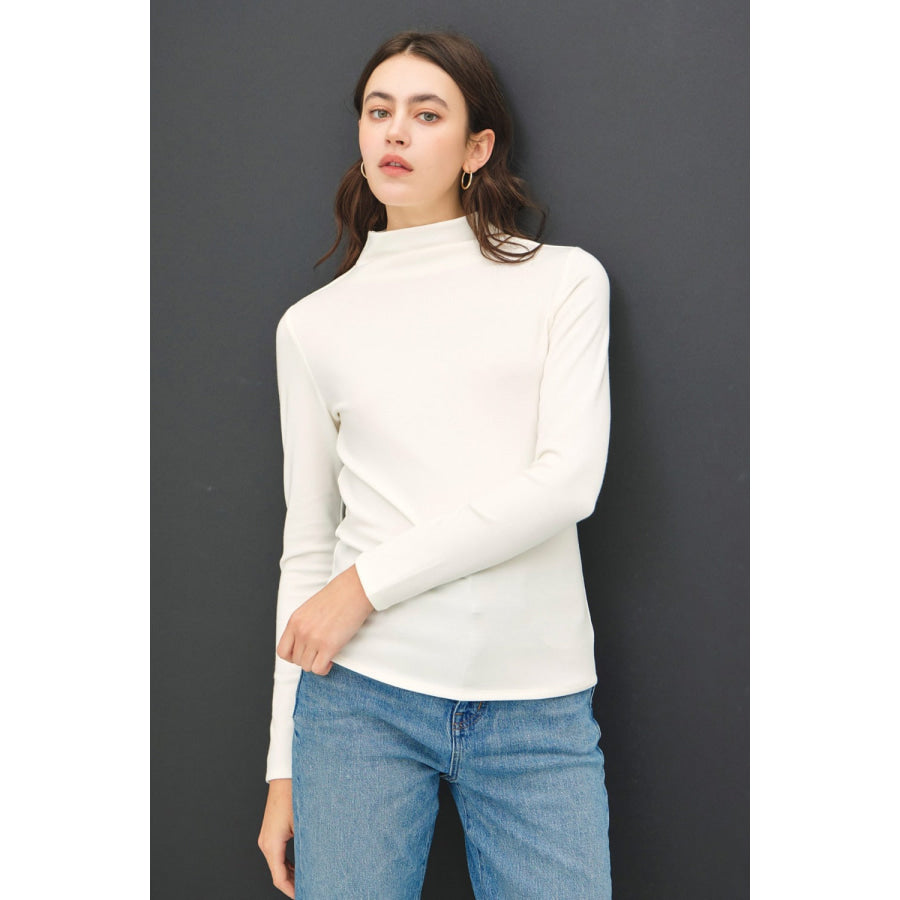 The Mock Neck Long Sleeve T-Shirt is a versatile and modern essential for any wardrobe. Featuring a stylish mock neck design and long sleeves, this t-shirt offers a chic and sophisticated look that can be easily dressed up or down. The soft and stretchy fabric provides a comfortable and flattering fit, making it a go-to piece for layering or wearing on its own. Whether paired with jeans for a casual ensemble or styled with trousers for a more polished outfit, this mock neck long sleeve t-shirt is a versatile and stylish option that effortlessly transitions from day to night. Add this piece to your collection for a touch of elevated simplicity in your everyday looks.