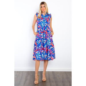 Be Stage Print Ruffled Midi Dress with Pockets