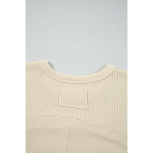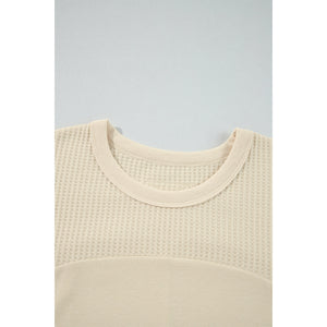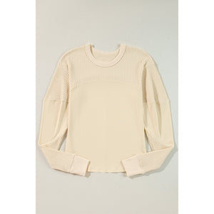 Beige Thermal Knit Patchwork Exposed Seam Long Sleeve Top