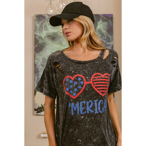 BiBi 4th Of July Theme Mineral Washed Laser Cut Top
