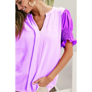 BiBi Air Flow Color Block Puff Sleeves V Neck Top