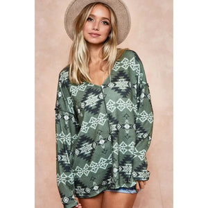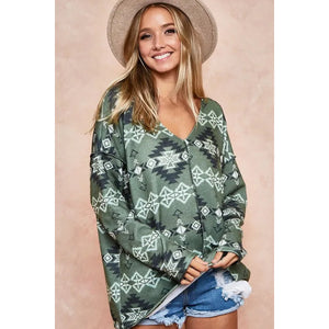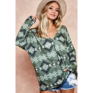BiBi Aztec Print Brushed Out Stitching Detailed Top