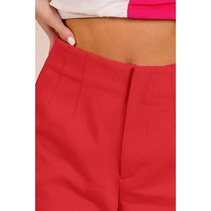 Bandless Tailored Shorts are a sleek and sophisticated bottom option featuring a clean and structured design without a visible waistband. These shorts offer a tailored and polished look that can easily be dressed up or down for different occasions. The absence of a waistband gives them a streamlined and modern aesthetic, perfect for creating chic and refined outfits.
