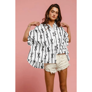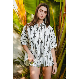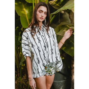 BiBi Bow Ribbon Woven Printed Button Down Shirt