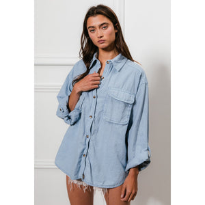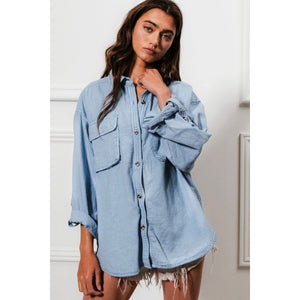 BiBi Button Down Stitch Detail Shirt with Chest Pockets