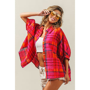 BiBi Button Up Dolman Sleeve Plaid Shirt