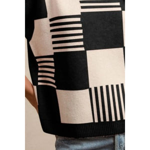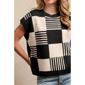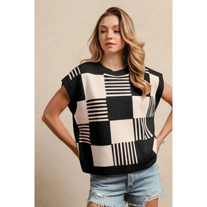 BiBi Checker With Stripes Pattern Sleeveless Sweater