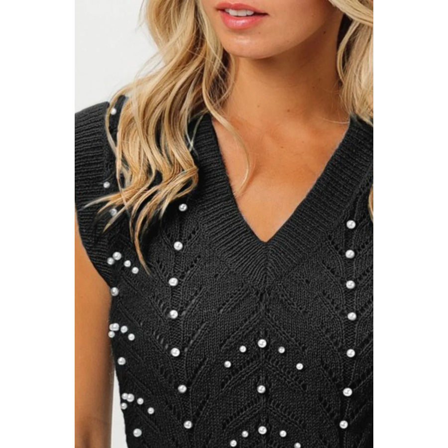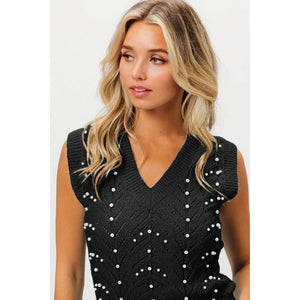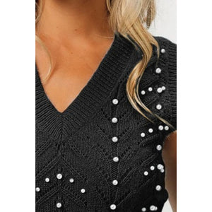 The Chevron Pointelle Pearl Knit Top is a sophisticated and elegant piece that combines delicate chevron pointelle detailing with subtle pearl embellishments. This knit top offers a classy and feminine look, perfect for adding a touch of refinement to your outfit. The chevron pattern adds texture and interest, while the pearl embellishments provide a subtle and chic accent. Pair this top with tailored pants or a skirt for a polished and stylish ensemble that exudes sophistication and grace.
