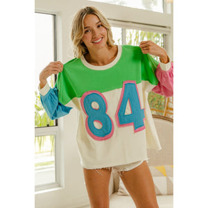 BiBi Color Block Patched Long Sleeve Top