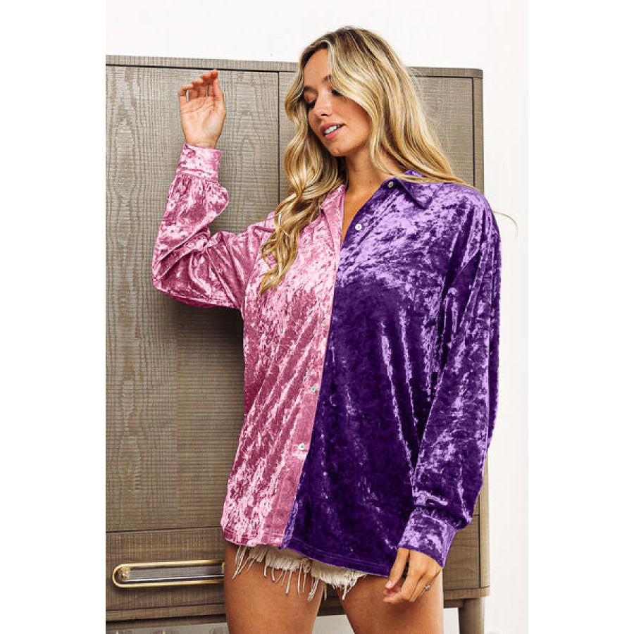 BiBi Contrast Button Up Long Sleeve Shirt
