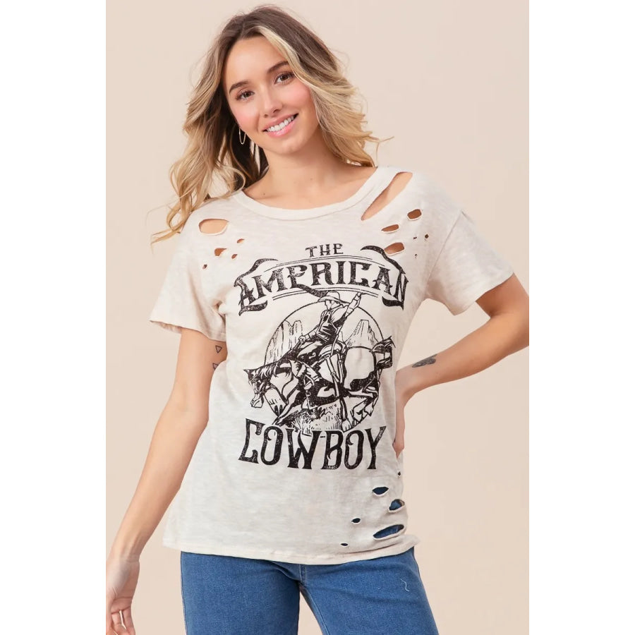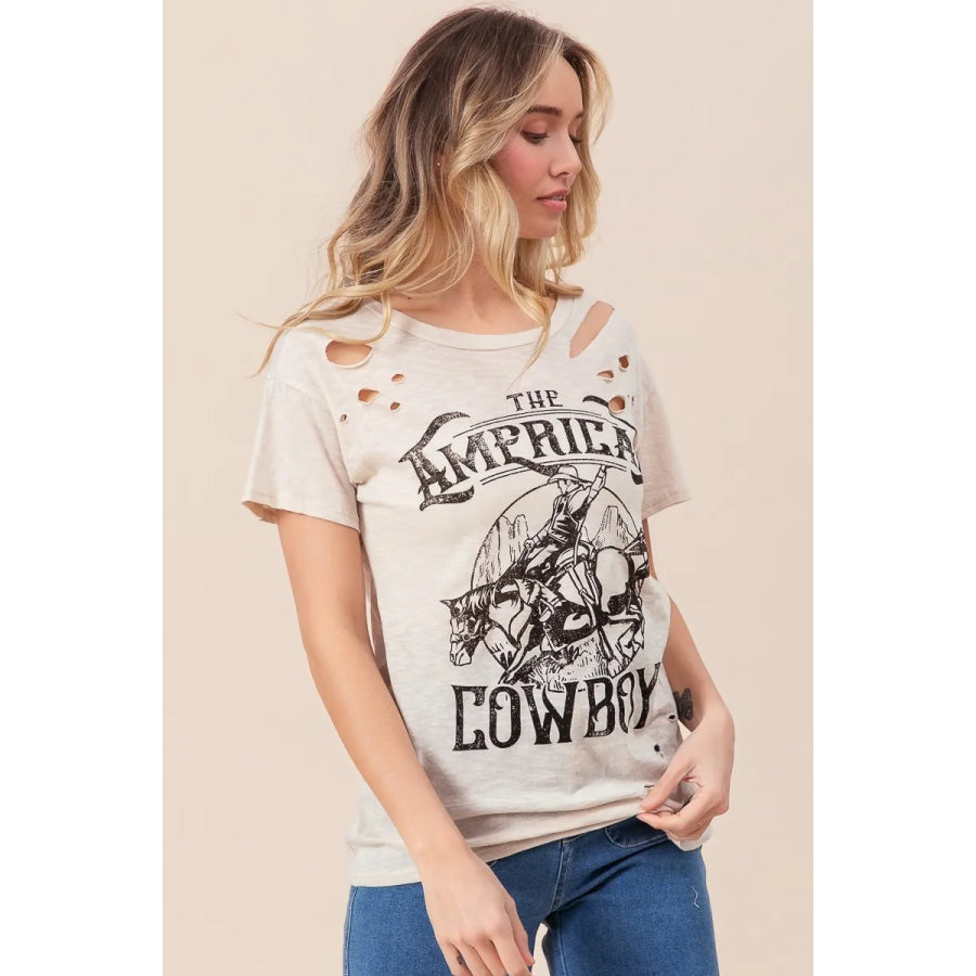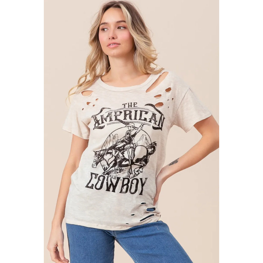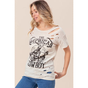 BiBi Cotton Slub Laser Top American Cow Boy Graphic