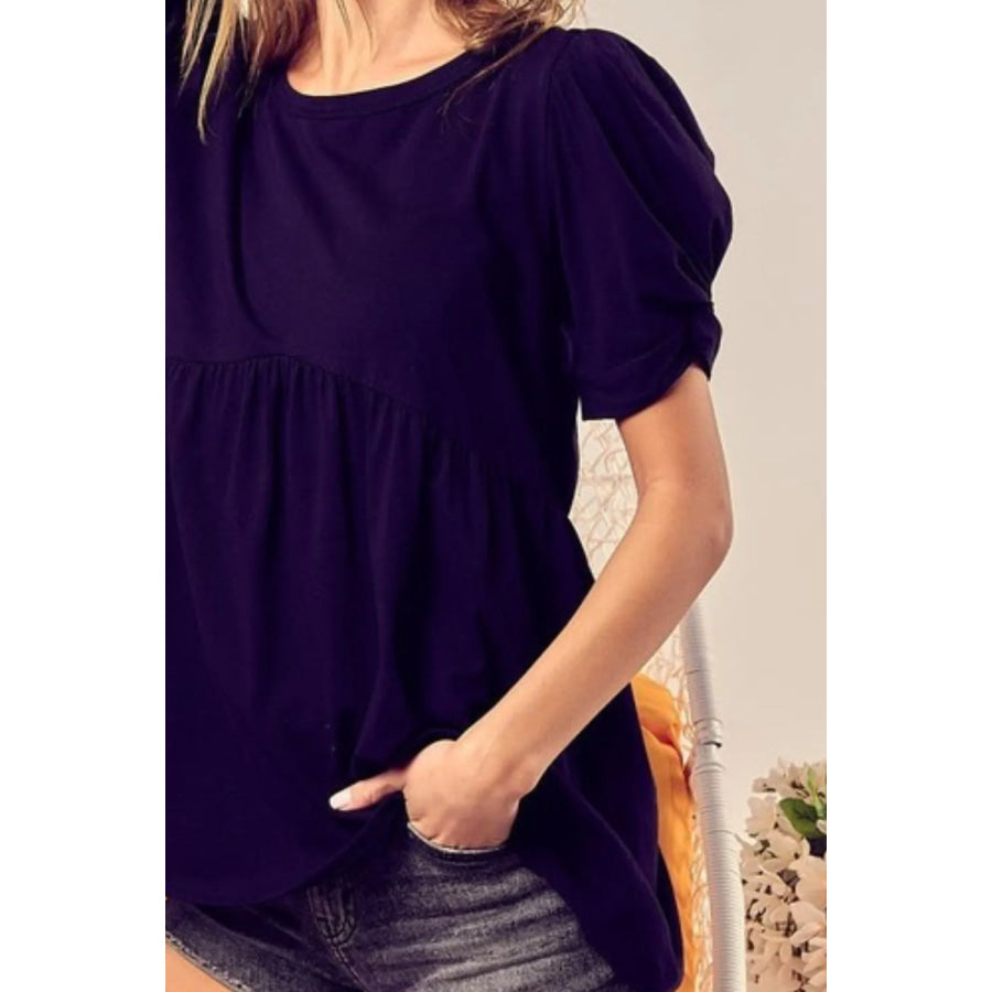 BiBi Cotton Span Knit With Puff Sleeve Baby Doll Top