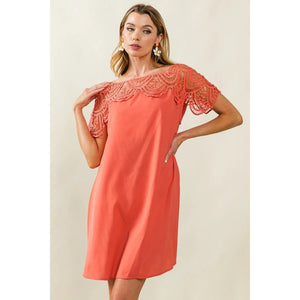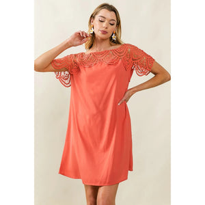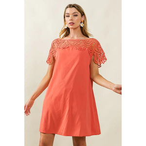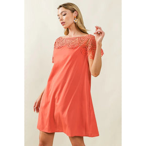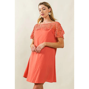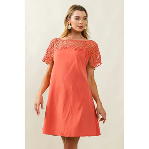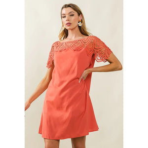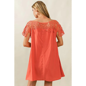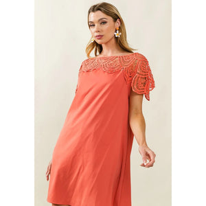 BiBi Crochet Lace Yoke Detailed Wrinkled Dress