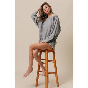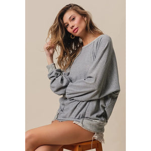 BiBi Cross Hatch Knit Uneven Hem Cont Lslv Top