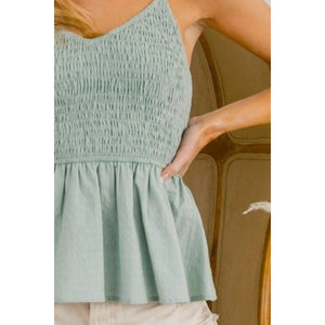 The Eyelet Woven Sleeveless Elasticized Top is a stylish and chic garment featuring delicate eyelet detailing and an elasticized waistband for a comfortable and flattering fit. This sleeveless top exudes a feminine and sophisticated vibe, perfect for warm weather or dressing up an outfit. The eyelet woven fabric adds a touch of texture and elegance, making it a versatile piece for various occasions.