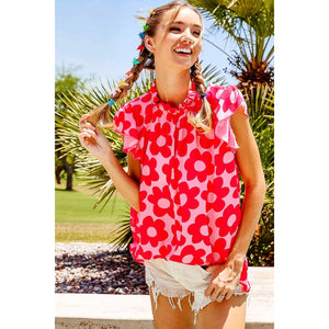 The Floral Contrast Ruffled Top is a stylish and feminine piece featuring a floral with ruffled detailing. This chic top combines floral prints with a touch of ruffles for a fresh and romantic look. Perfect for adding a pop of color and texture to your outfit, this top can be dressed up or down for various occasions. Elevate your wardrobe with the Floral Contrast Ruffled Top, a versatile and trendy choice that will add a touch of sophistication to your ensemble.
