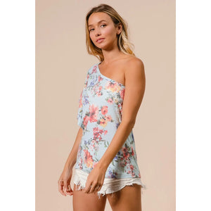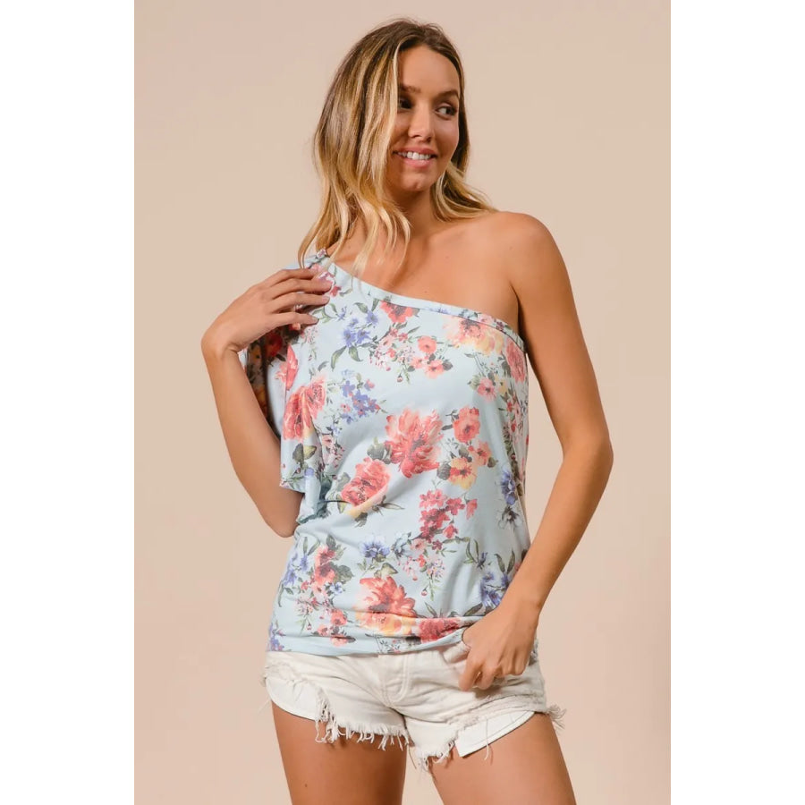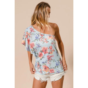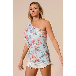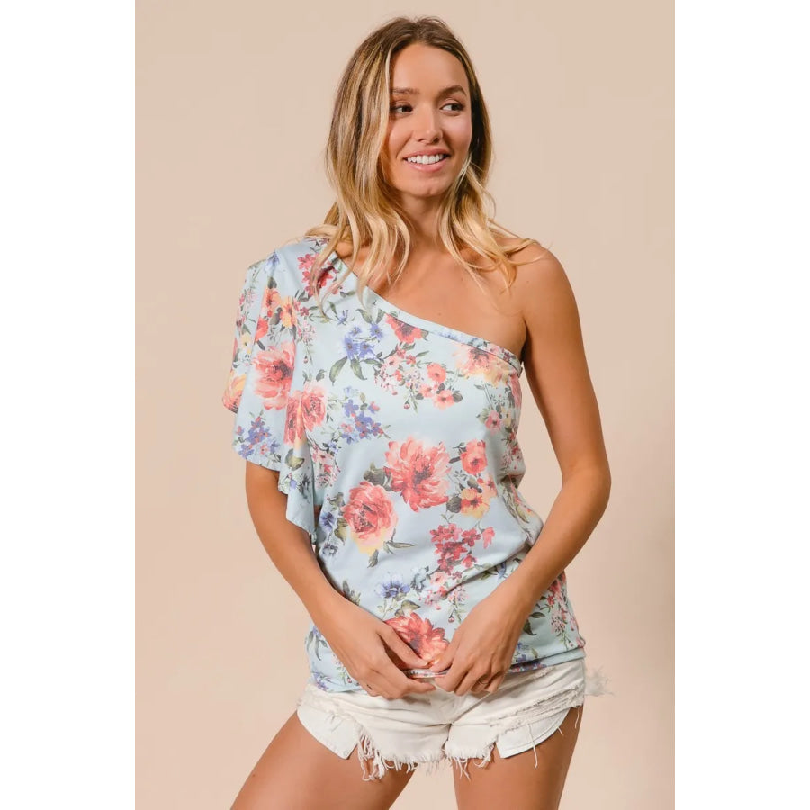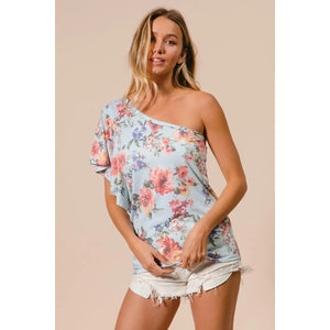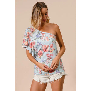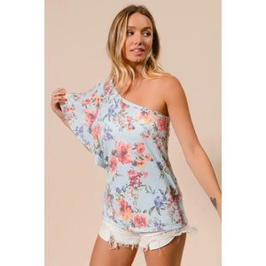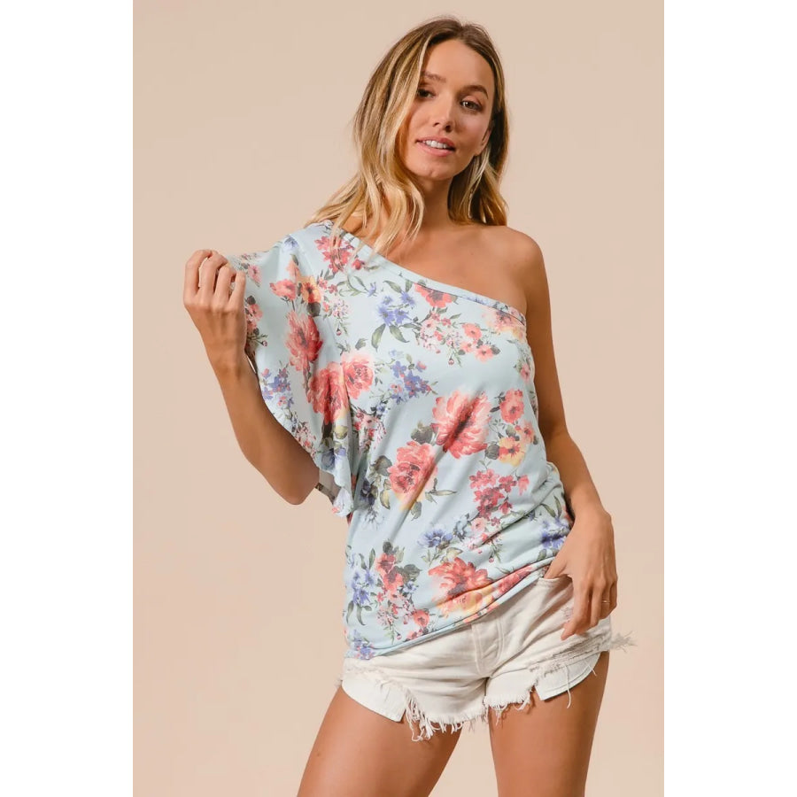 BiBi Floral Printed Jersey Knit Ruffle Sleeve Top
