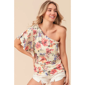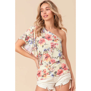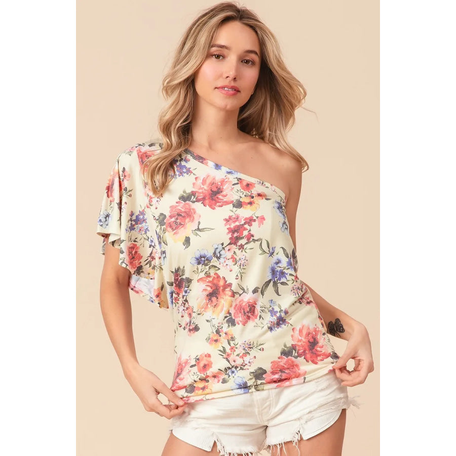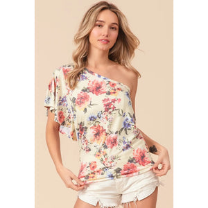 BiBi Floral Printed Jersey Knit Ruffle Sleeve Top