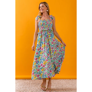 BiBi Floral Ruffle Trim Smocked Cami Dress