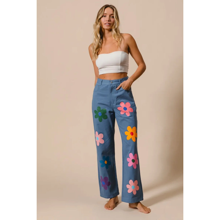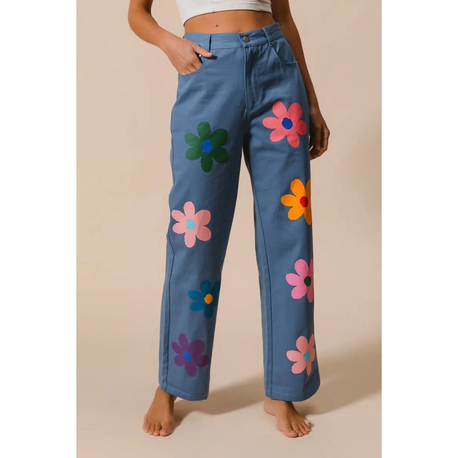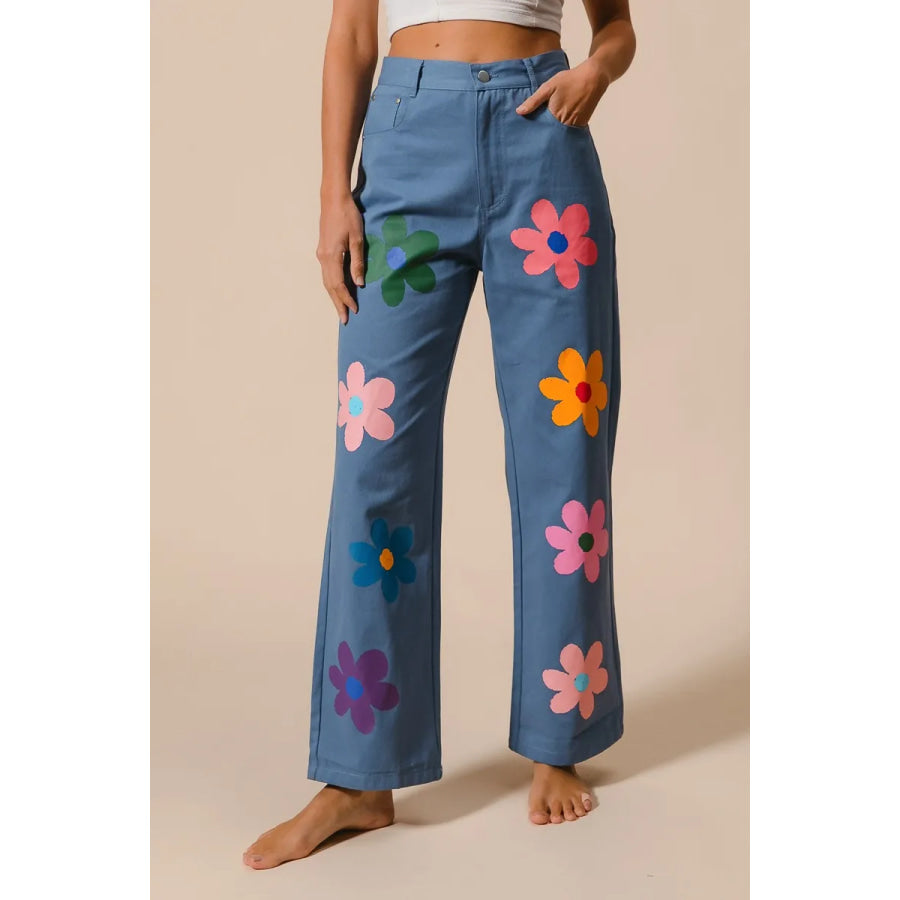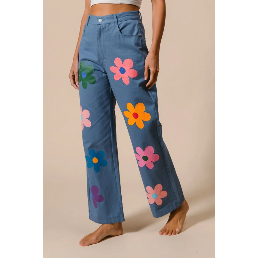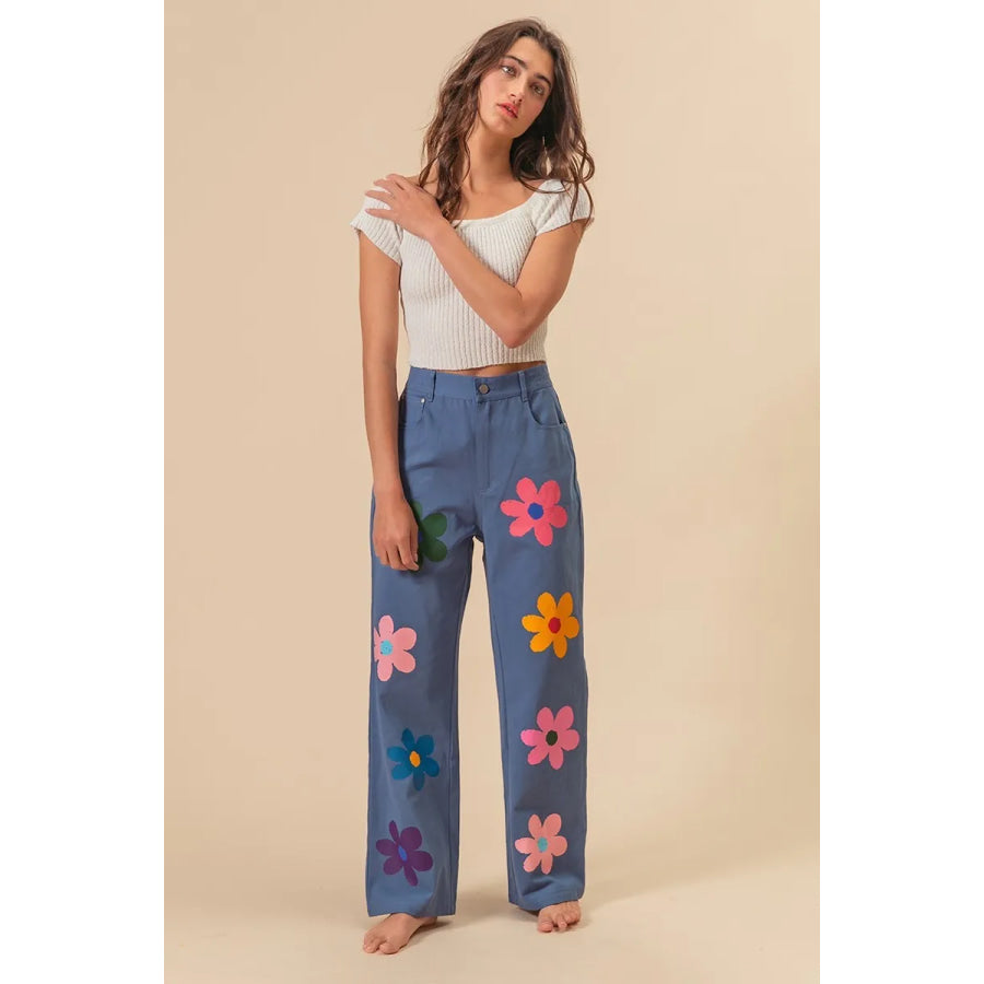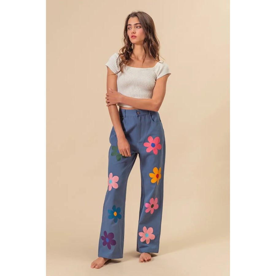 BiBi Flower Print Straight Legs Pants