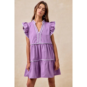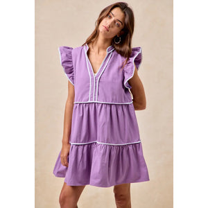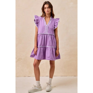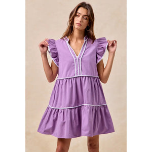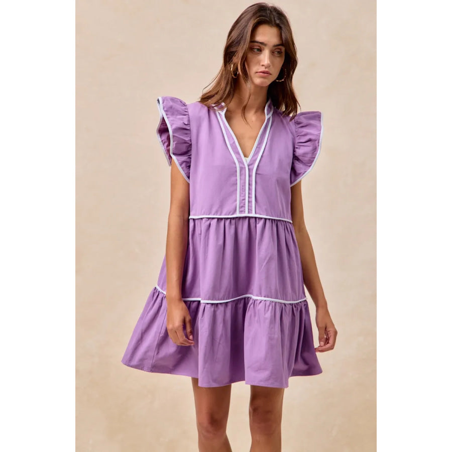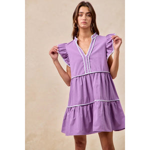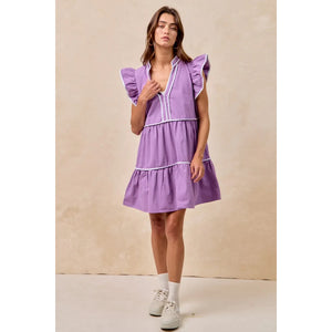 BiBi Gameday Theme Contrast Binding Ruffled Dress