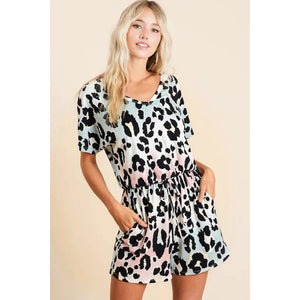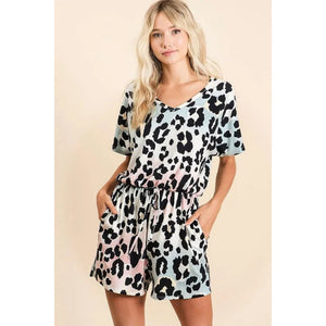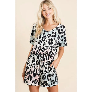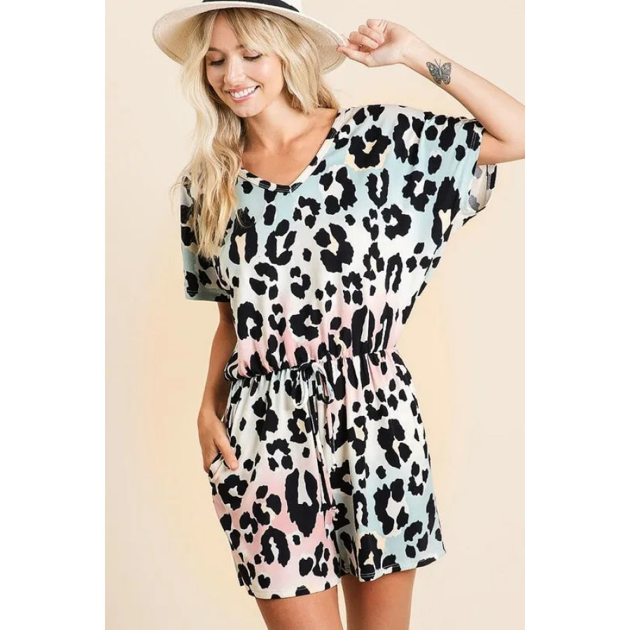 BiBi Gradation Leopard Soft Knit V-neck Romper