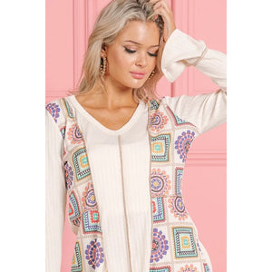 The Granny Square Print Contrast Annie Rib V-Neck Top combines a mix of vintage and modern styles for a unique and eye-catching look. The granny square print adds a retro and nostalgic touch, reminiscent of traditional crochet patterns. The contrast rib detailing on the V-neckline adds a modern and chic element to the top. This combination of design elements creates a stylish and eclectic top that can be paired with jeans or skirts for a fashion-forward outfit. Elevate your style with the Granny Square Print Contrast Annie Rib V-Neck Top for a trendy and standout ensemble.