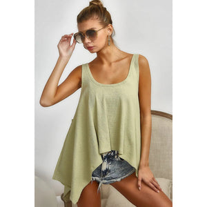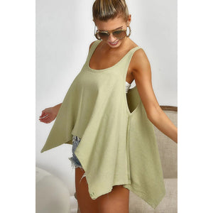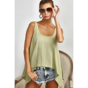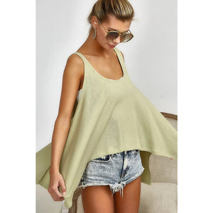 The High and Low Flare Knit Tank Top is a trendy and versatile piece that features a flared silhouette with a high-low hemline. The knit fabric offers comfort and stretch, while the flared design adds a stylish and flattering drape to the top. Perfect for creating a flowy and effortless look, this tank top can be paired with leggings, jeans, or shorts for a chic and comfortable ensemble that transitions easily from day to night.