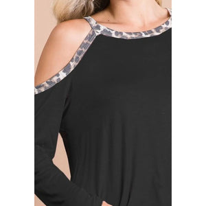 BiBi Jersey Knit Cold Shoulder Top with Leopard Neck