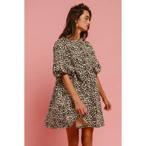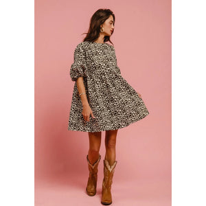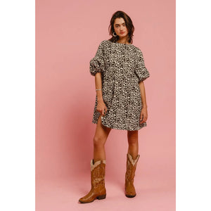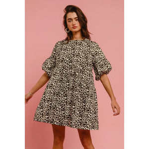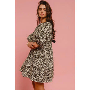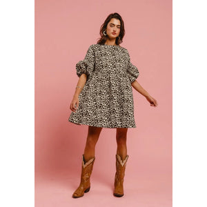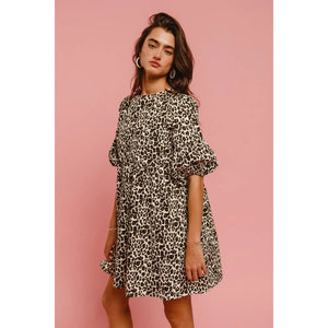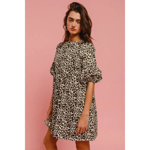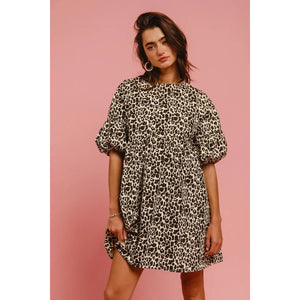 This stylish leopard print denim dress combines classic denim craftsmanship with bold animal print design. Made from premium denim fabric, it features a relaxed mini dress silhouette with fashion puff sleeves and button-front closure. The eye-catching leopard pattern adds a wild touch to the timeless denim material, making it perfect for casual outings and fashion-forward styling. The comfortable fit and versatile design make it suitable for various occasions, from casual day wear to fashion evening looks.