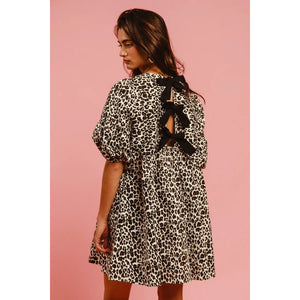 BiBi Leopard Denim Dress With Back Contrast Tie Detail