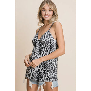 BiBi Leopard Printed Gauze Knit Twist Front Detailed Cami