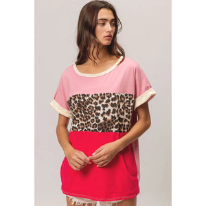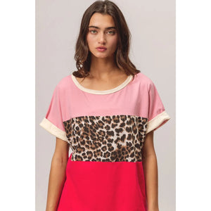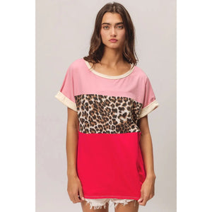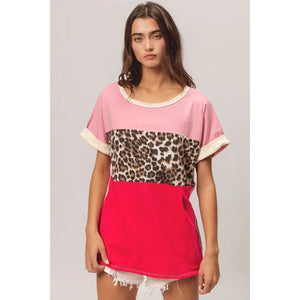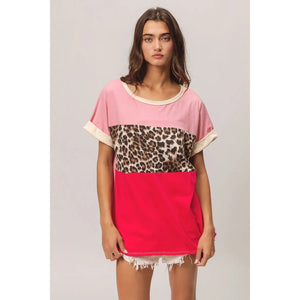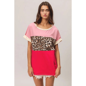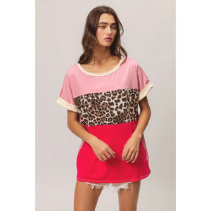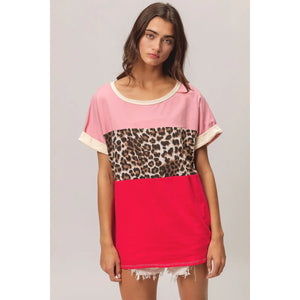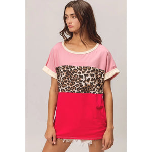 BiBi Leopard Printed Jersey Color Block Roll Up