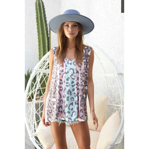 BiBi Leopard Printed Jersey Knit Color Block Sleeveless