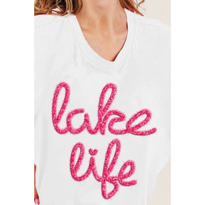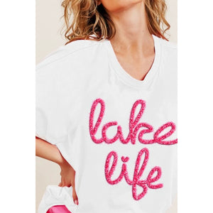 BiBi Metallic Letter Short Dolman Sleeve Top