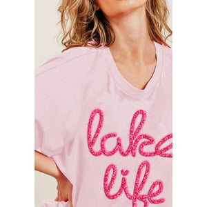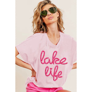 BiBi Metallic Letter Short Dolman Sleeve Top
