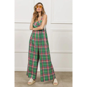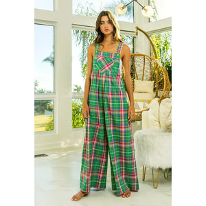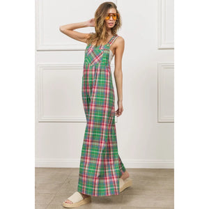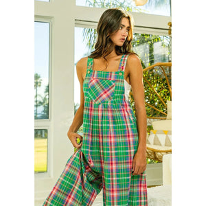 The Multi-Color Check Plaid Overall is a fun and playful garment featuring a patterned design with multiple colors in a checkered plaid pattern. The overall style adds a casual and laid-back vibe to the outfit, making it a versatile piece that can be worn for various occasions. Perfect for a retro-inspired look, these overalls can be paired with a basic tee or a crop top for a trendy and stylish ensemble.