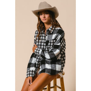 BiBi Plaid Fleece Button Down Long Sleeve Shirt