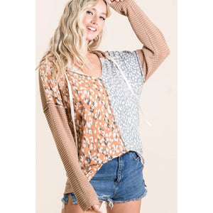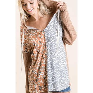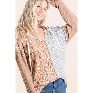 BiBi Popcorn Waffle Knit Hoodie with Print Block Front