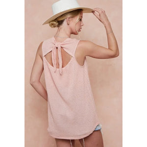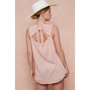 BiBi Popcorn Waffle Open Back Top with Tied Ribbon