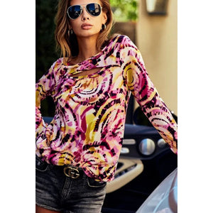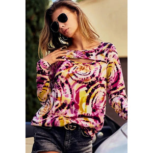 BiBi Print Tie Dye Rib Knit Top With Cut Out Neck