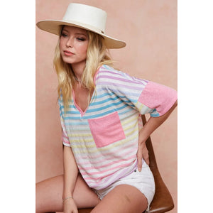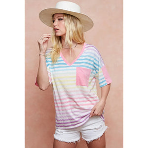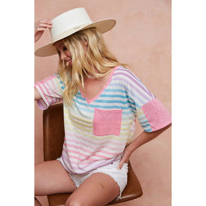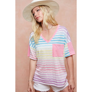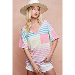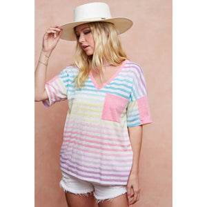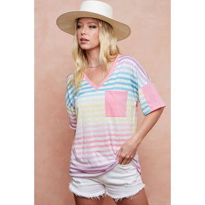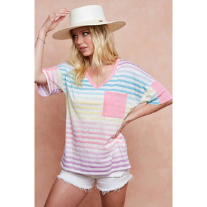BiBi Rainbow Stripe Printed Triblend Knit Top