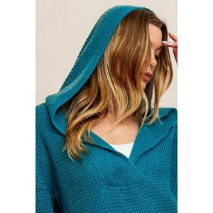 BiBi Raw Edge Detail V-Neck Sweater Hoodie
