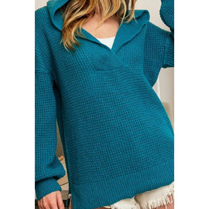 The Raw Edge Detail V-neck Sweater Hoodie is a stylish and casual piece featuring a V-neck design and raw edge detailing for a laid-back look. The sweater hoodie combines comfort with an effortlessly cool style, perfect for a relaxed outfit. The raw edge detailing adds a touch of edge and texture to the hoodie, giving it a modern and fashionable appeal. Pair this cozy and chic hoodie with your favorite jeans or leggings for a versatile and trendy ensemble that is perfect for everyday wear.